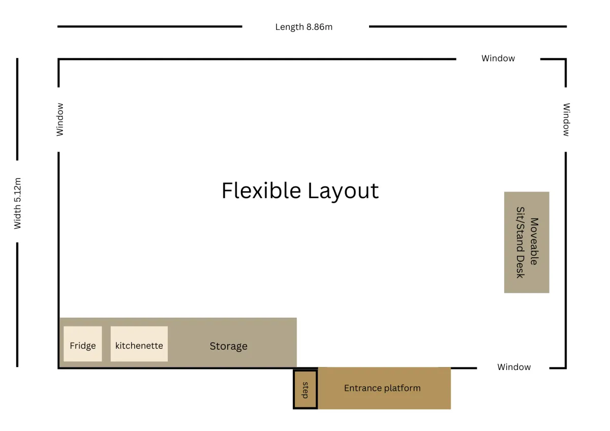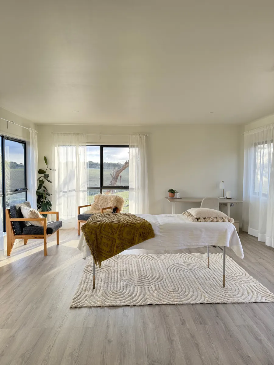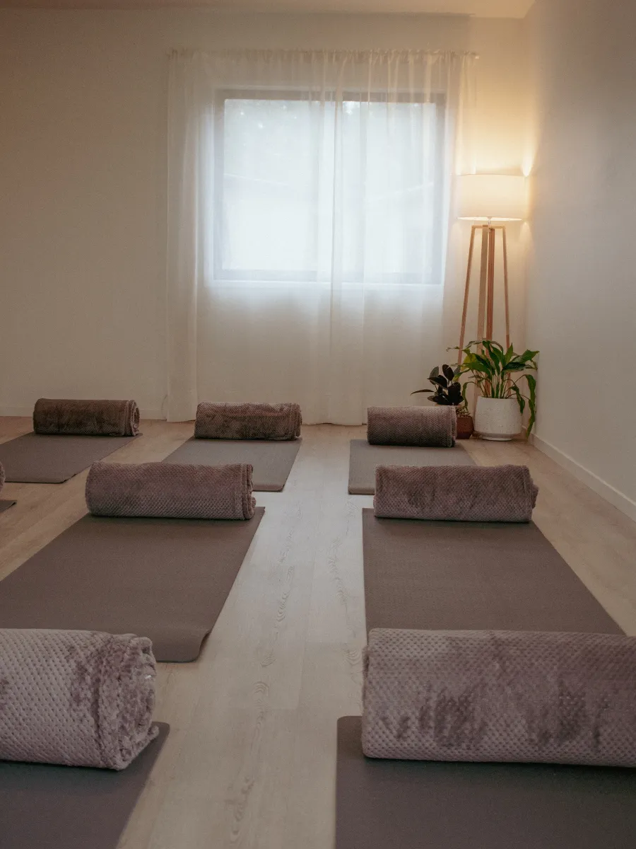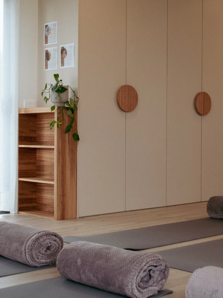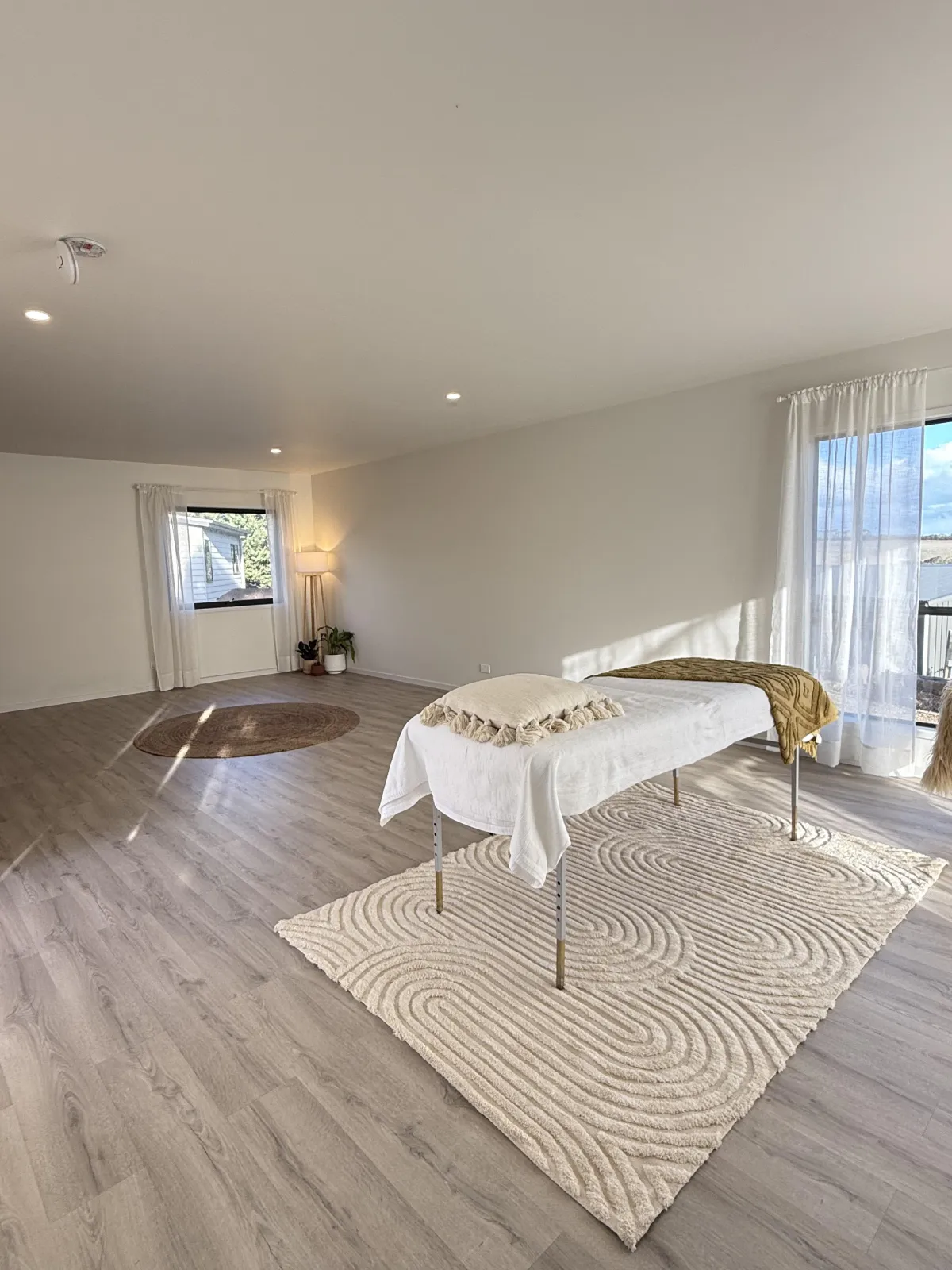 Stillpoint Studio is a quiet, private venue with a warm yet neutral aesthetic that naturally supports any wellness event. The large detached room comfortably holds up to 12 yoga mats, with ample space for movement, circle work, or seated workshops.